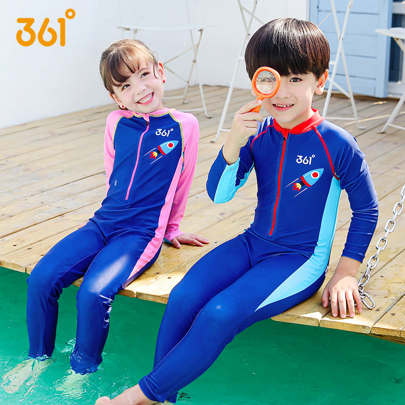 361 degree children's swimsuit Male and female children's one-piece sunscreen swimsuit Children's middle and large children's 2021 new long-sleeved swimsuit