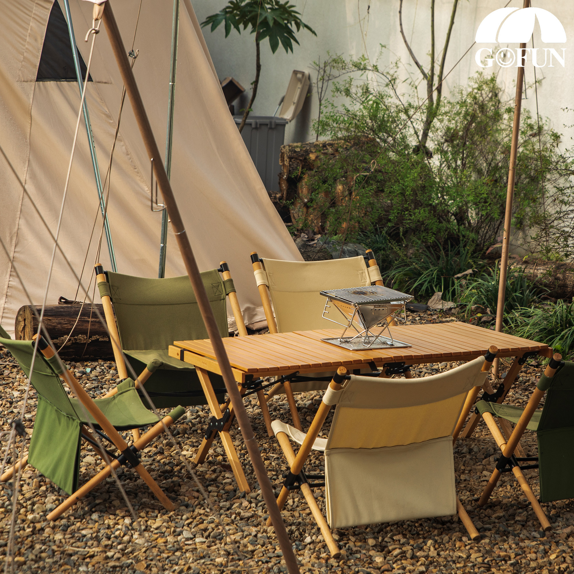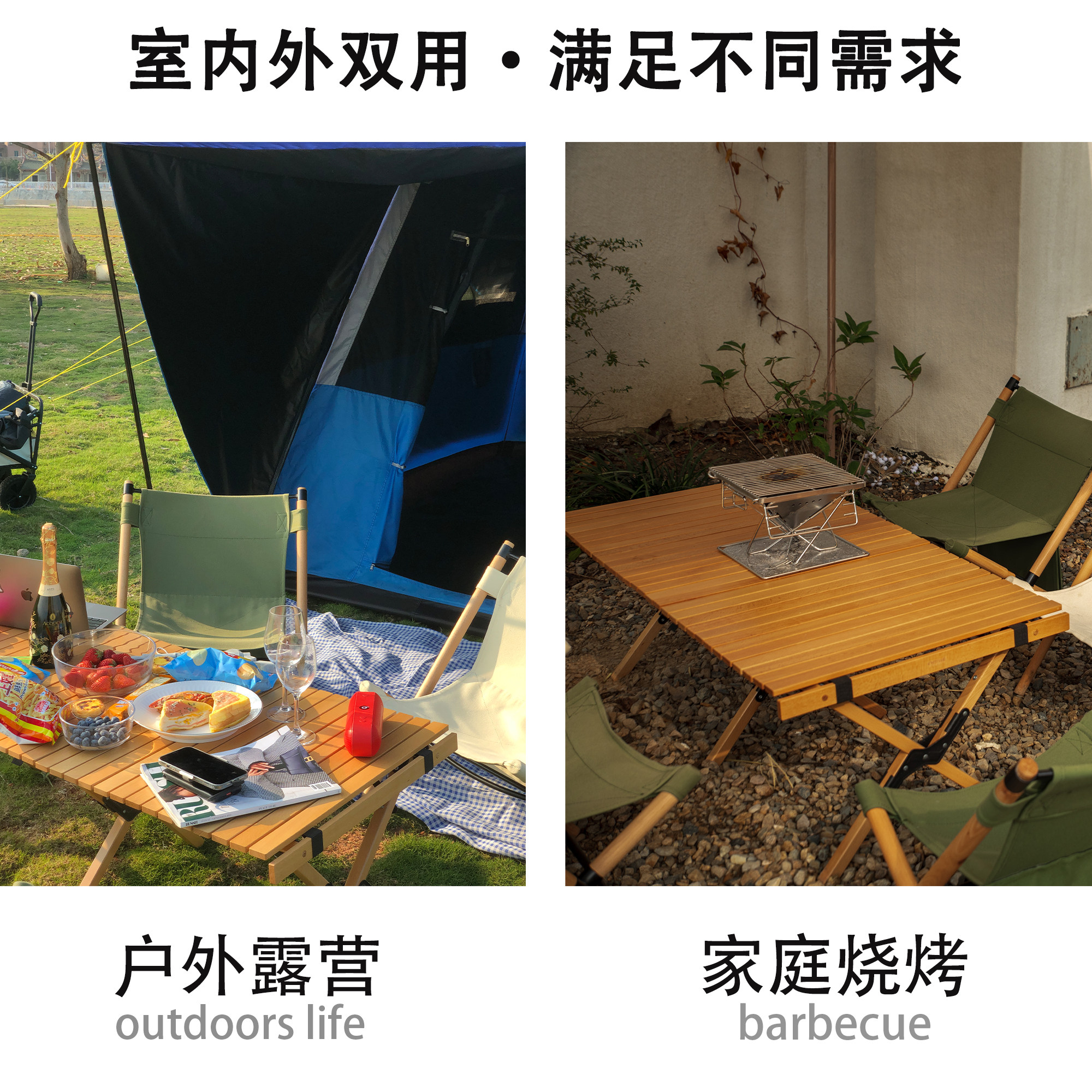 Folding table outdoor portable rectangular solid wood barbecue picnic table full set of camping self-driving tour simple egg roll table