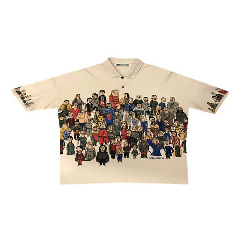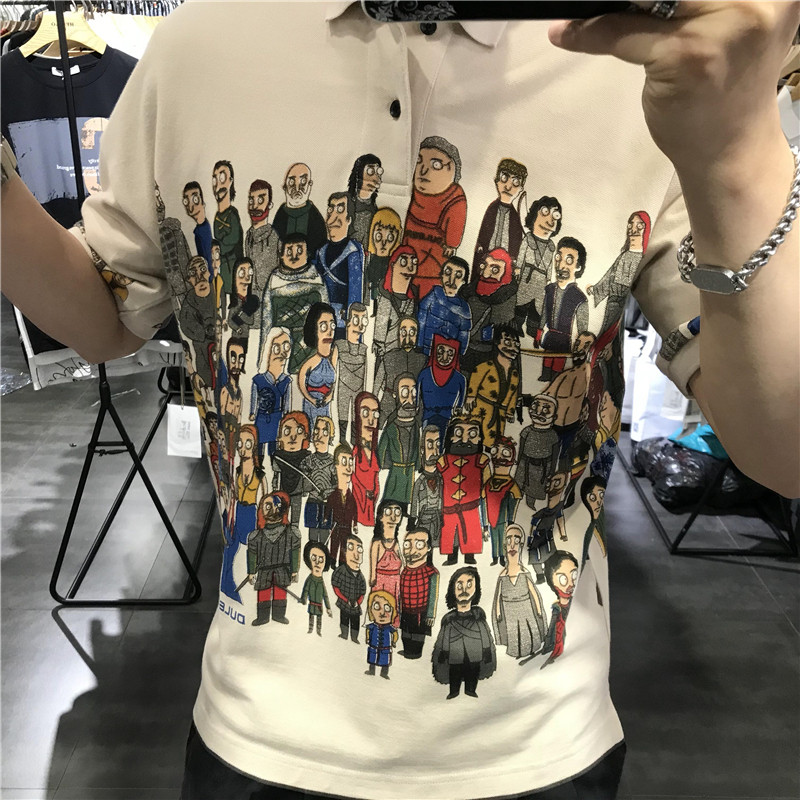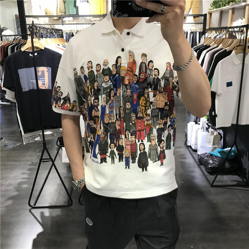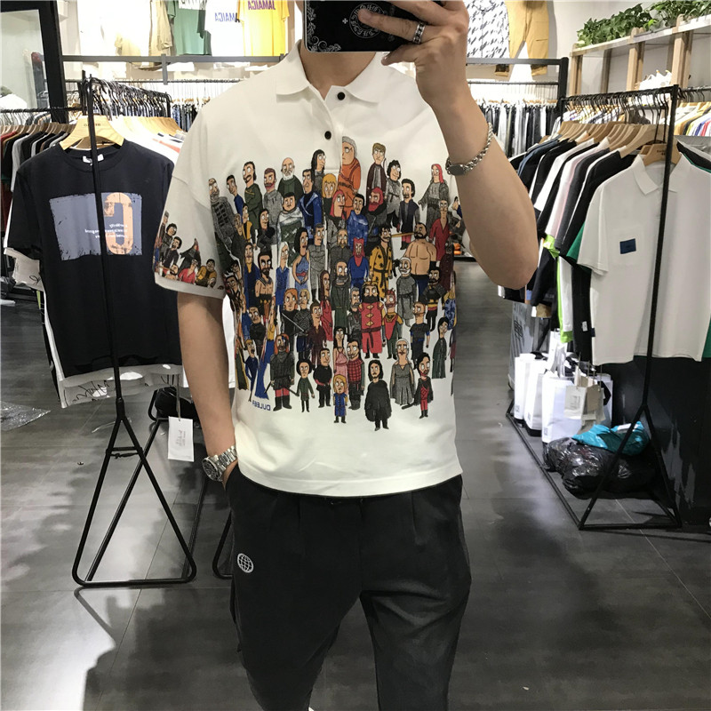 2021 Summer New Characters Graffiti Polo Shirts Men Tide Cards Loot Full Cotton Pins Short Sleeve T-shirt Tide