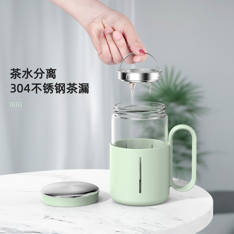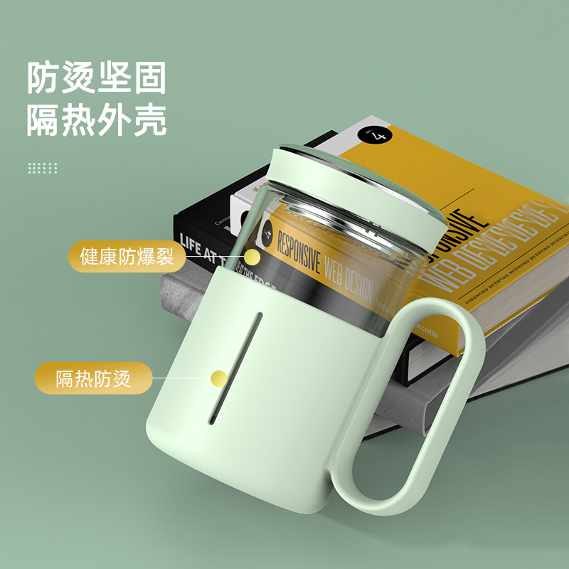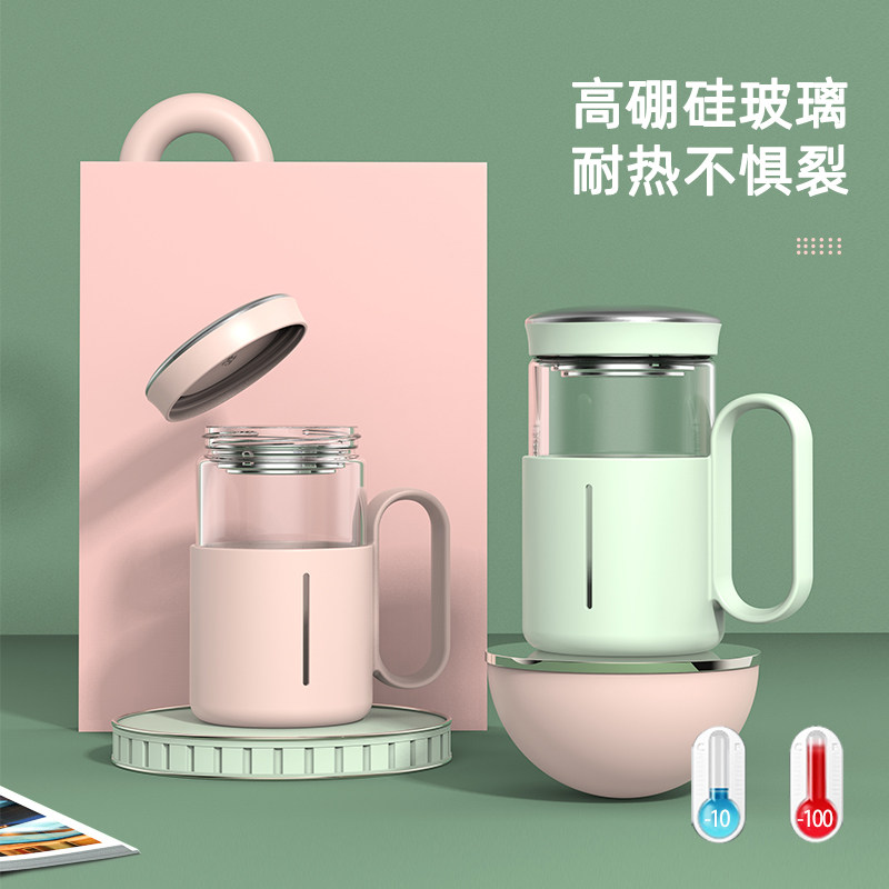 Office water cup Tea cup with lid Glass lady with handle filter flower tea cup High-value household