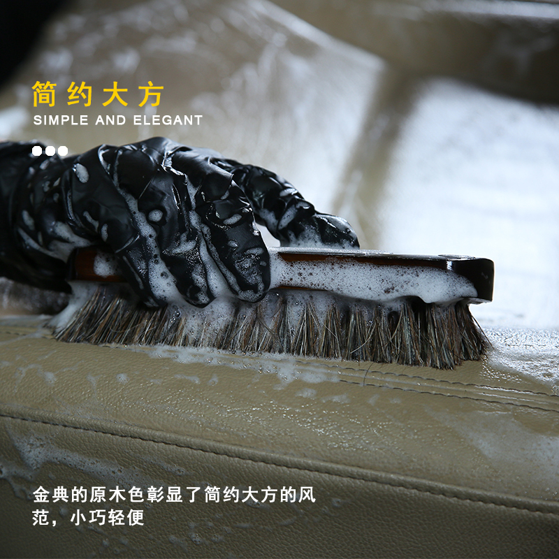 Car Beauty Horse Hair Brush Mane Mane Car Interior Brushed Genuine Leather Wash High-end Long Hair Wood Handle Thickened Brush