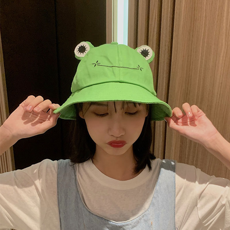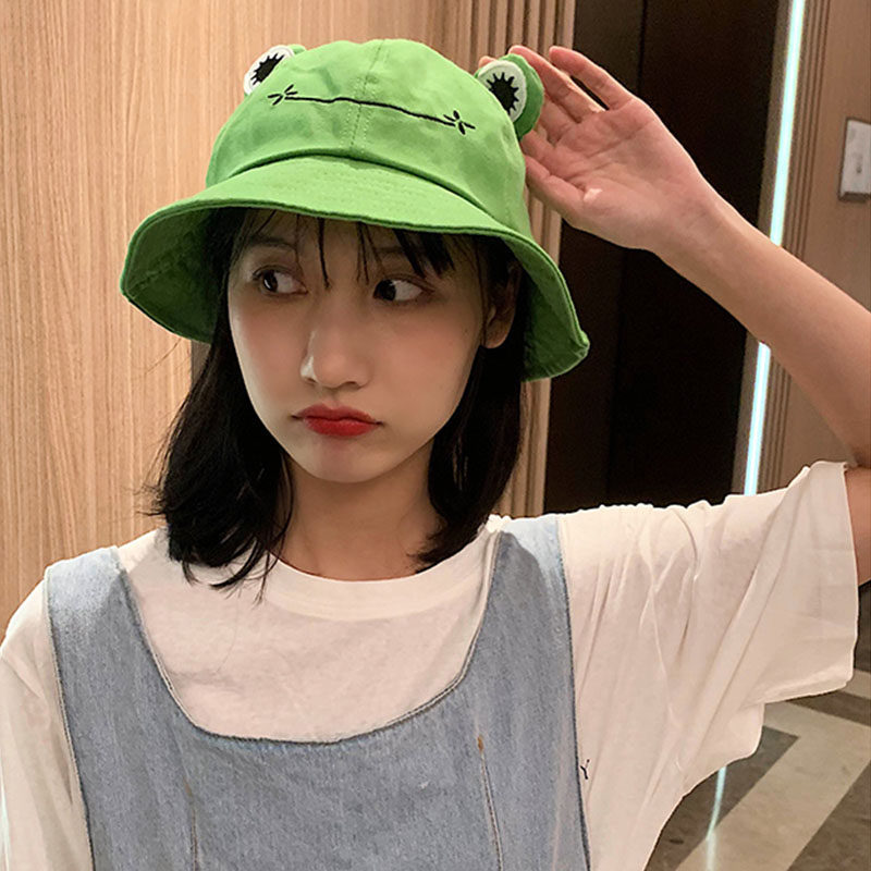 New Cute Frog Bucket Hat Solid Color Funny Big Eyes Smile Bu