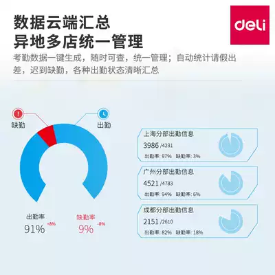 Deli fingerprint face attendance machine intelligent integrated check-in machine multi-function recognition All remote unified management of remote mobile phone positioning WIFI networking wireless 3765CN
