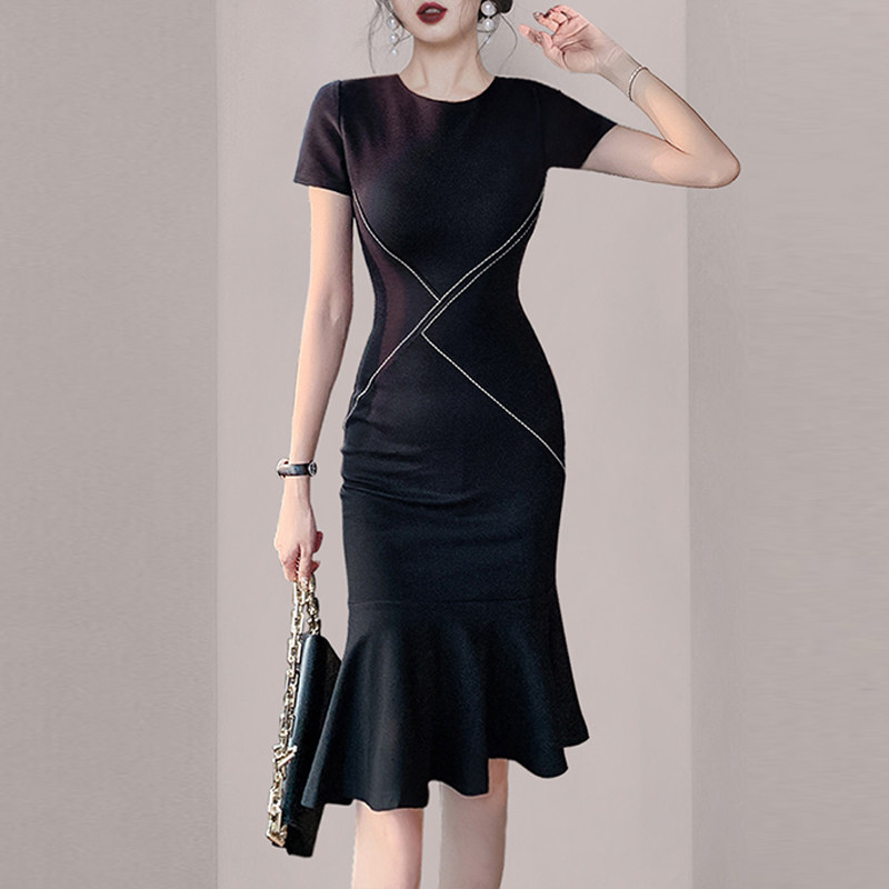 Royal sister light mature style temperament high-end dress 2022 summer new slim French ladies bag hip skirt women's clothing