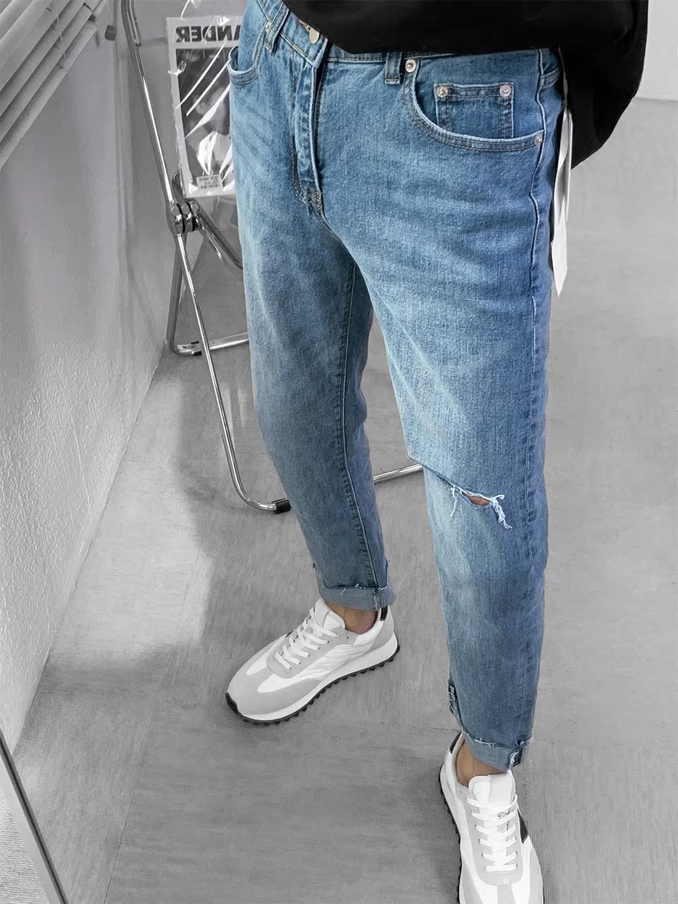 Dragon's nagging curbside Hole Jeans Men's Summer Thin-style Smoke Tubes Pants for a Knee Tide Card 2021 New
