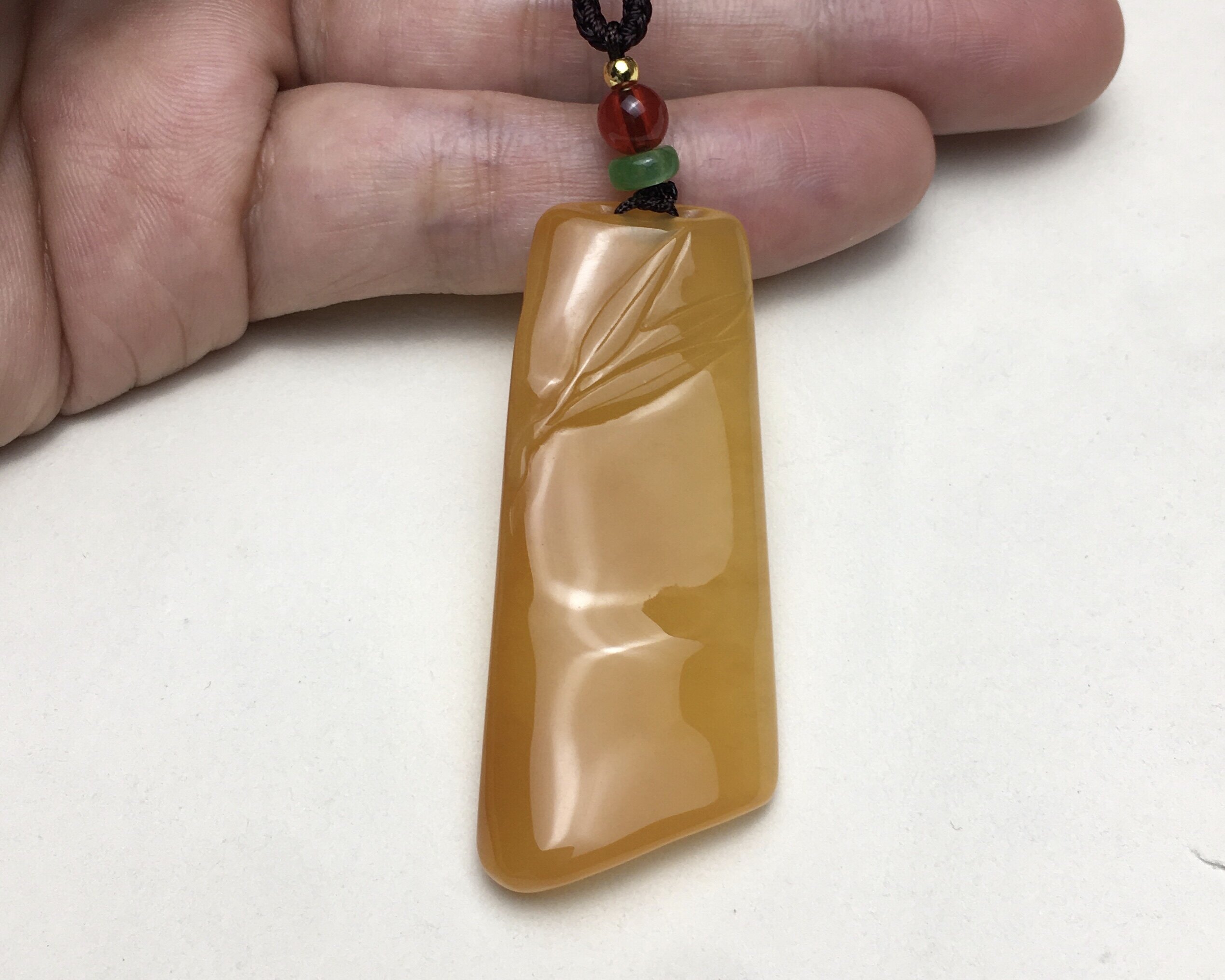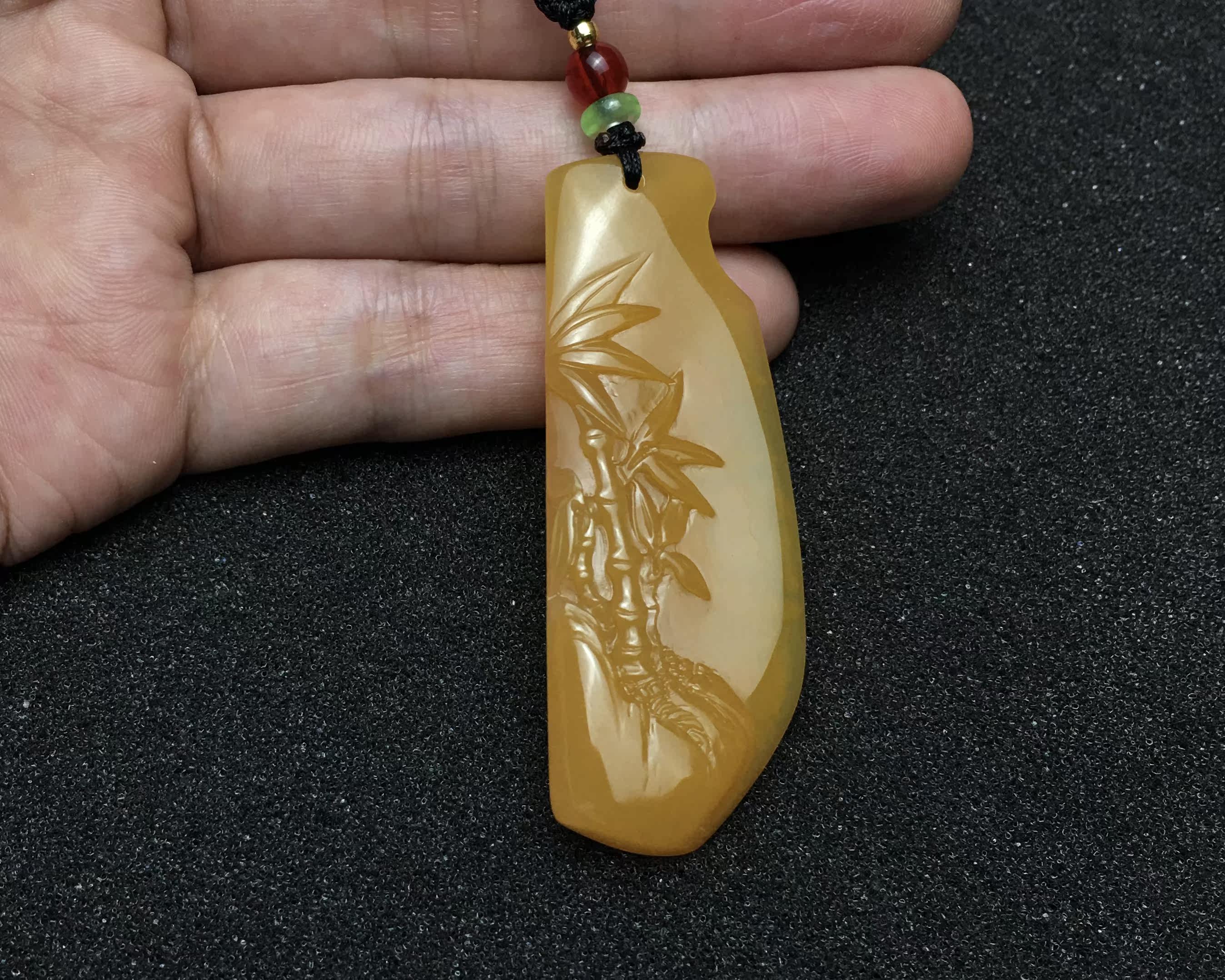 Bamboo newspaper Ping An pendant Yunnan Huanglongyu seed stock Ice germline chicken oil yellow listing male and female with bamboo card necklace natural jade