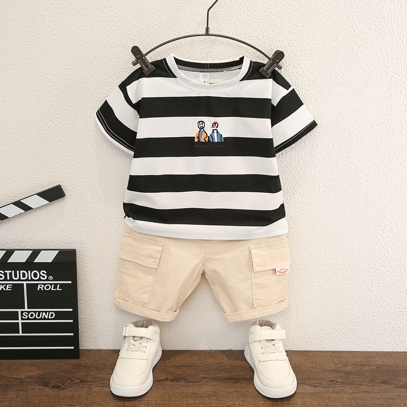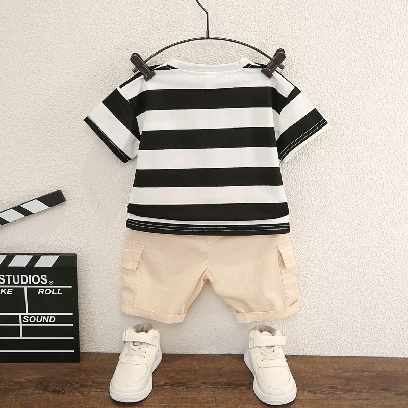 2023 New Boy Strip Summer Gas Baby Summer Clothing Cotton Children's Boy Short Sleeve Two Cases