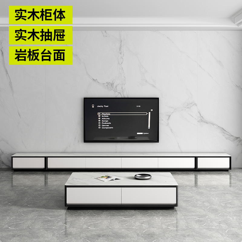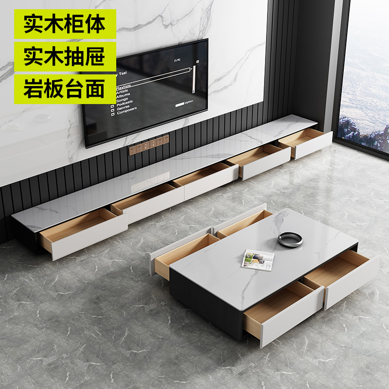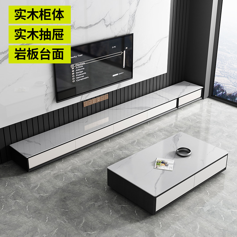 Rock board solid wood TV cabinet modern simple tea table combination living room 3 meters full solid wood TV cabinet floor cabinet