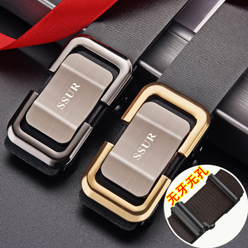 Belt men's leather toothless automatic buckle cowhide belt business all-match casual trendy men's pants belt young people