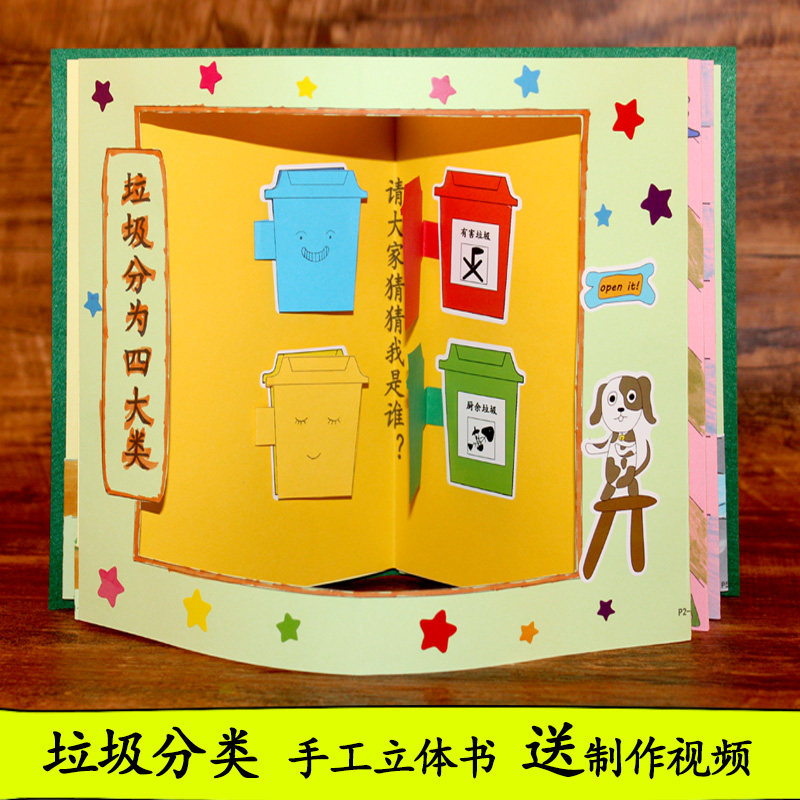Garbage classification three-dimensional book diy homemade picture book Semi-finished children coloring handmade material pack Kindergarten
