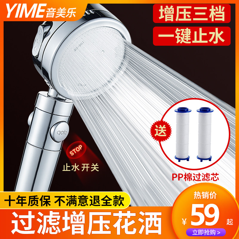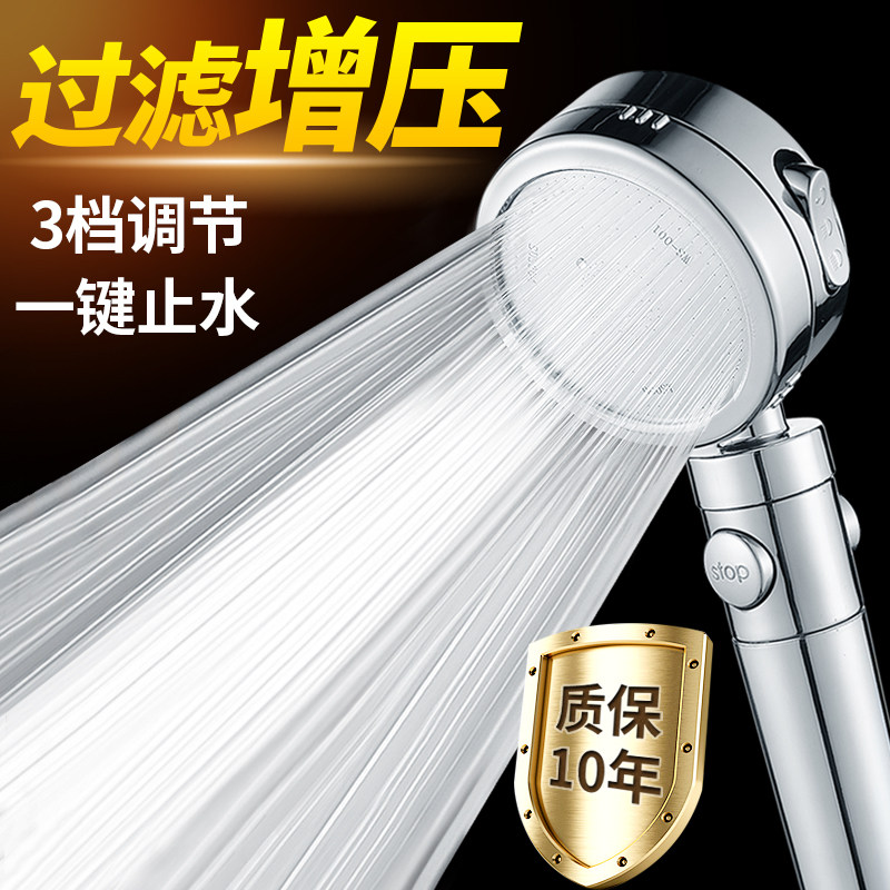 Booster Three-gear ● filtration shower head (white) pressurized three-gear ● filtration shower head (silver color suit 1) pressurized three-gear filter 1 5 m shower hose (silver suit 2) pressurization