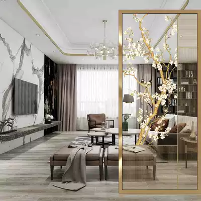 Porch living room glass screen partition modern simple decoration bedroom dressing room shelter light luxury birds and flowers
