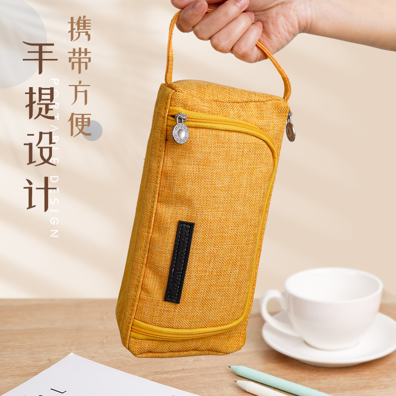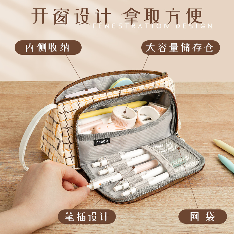 Large Capacity Pen Bag Brief Female Day Series Ins Tide Junior High School Students High School Students Korean Version Cute Adolescent Girls Pencil Pencil Case Canvas Middle School Students High Face Value Day Style Double Layer Pencil Bag Netting Red