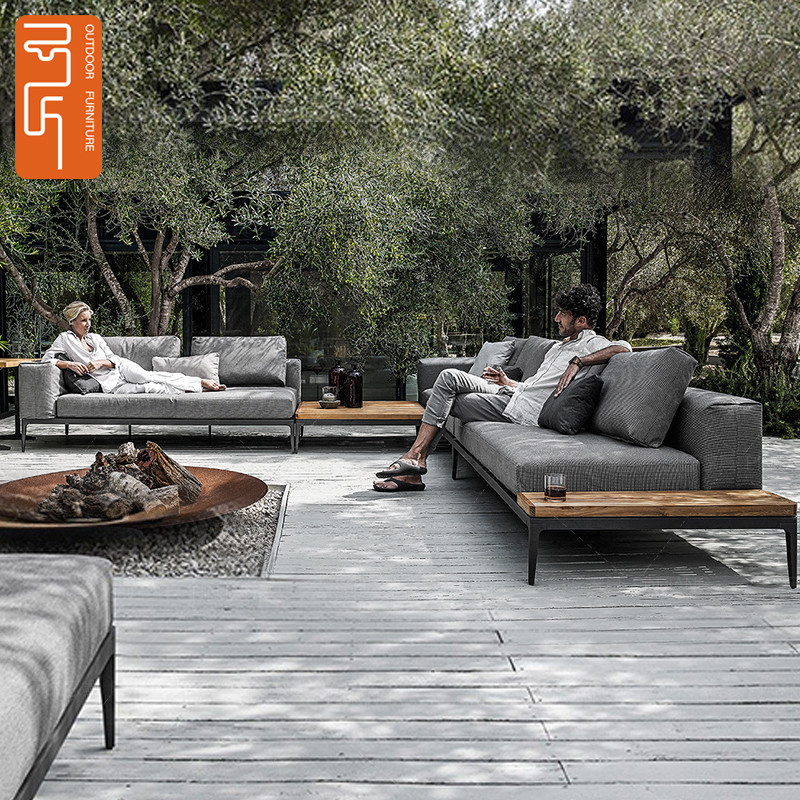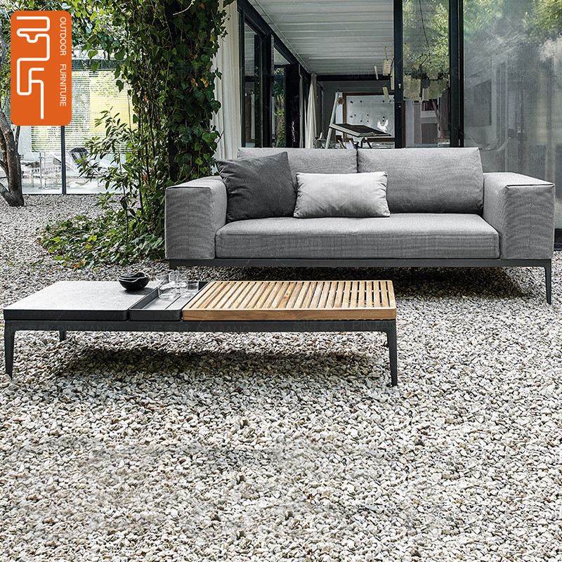 Outdoor rattan open-air sofa combination waterproof sunscreen homestay garden teak Nordic outdoor rattan chair sofa furniture