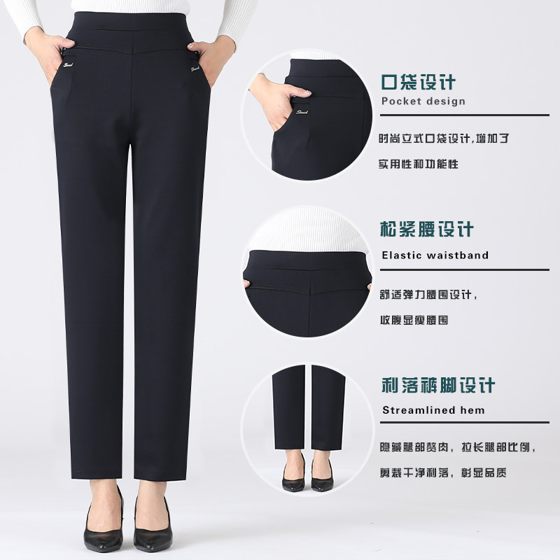 Mom dress summer thin fashion thin elastic waist casual pants fashion new women's middle-aged straight pants
