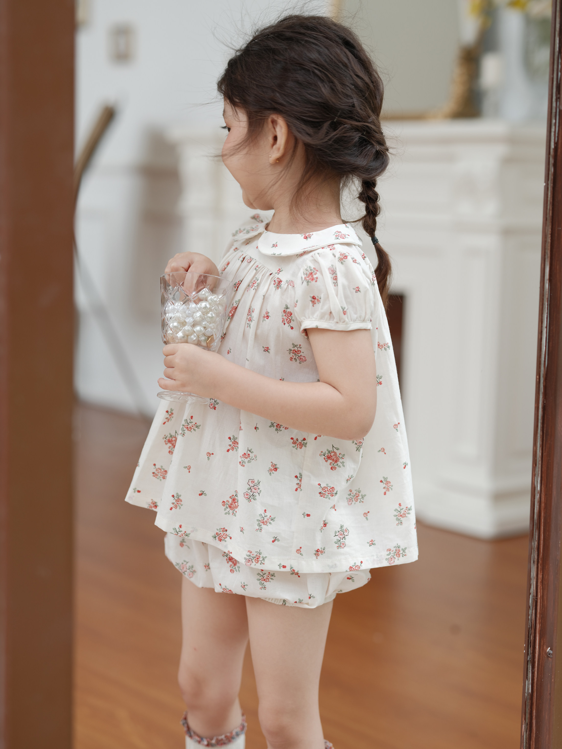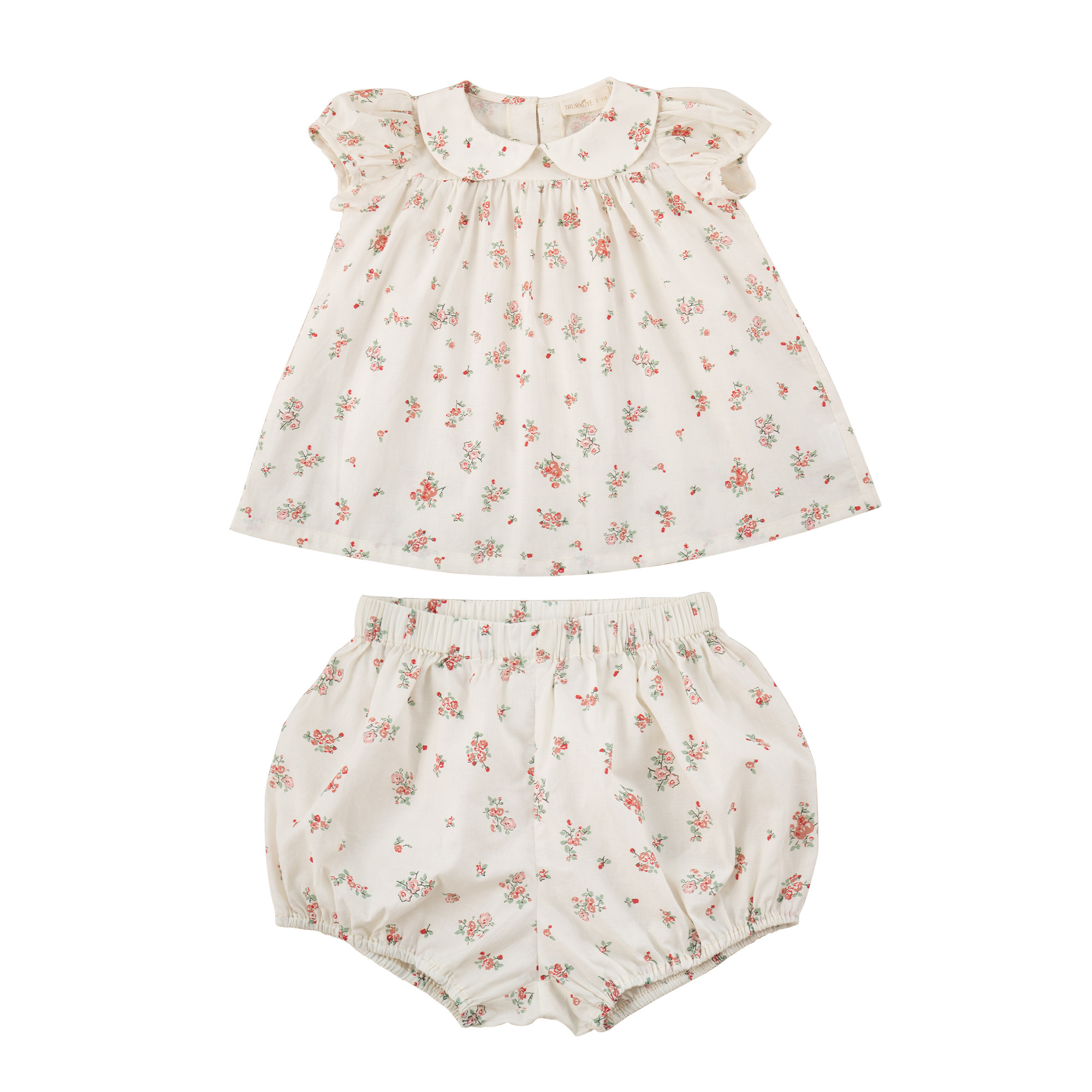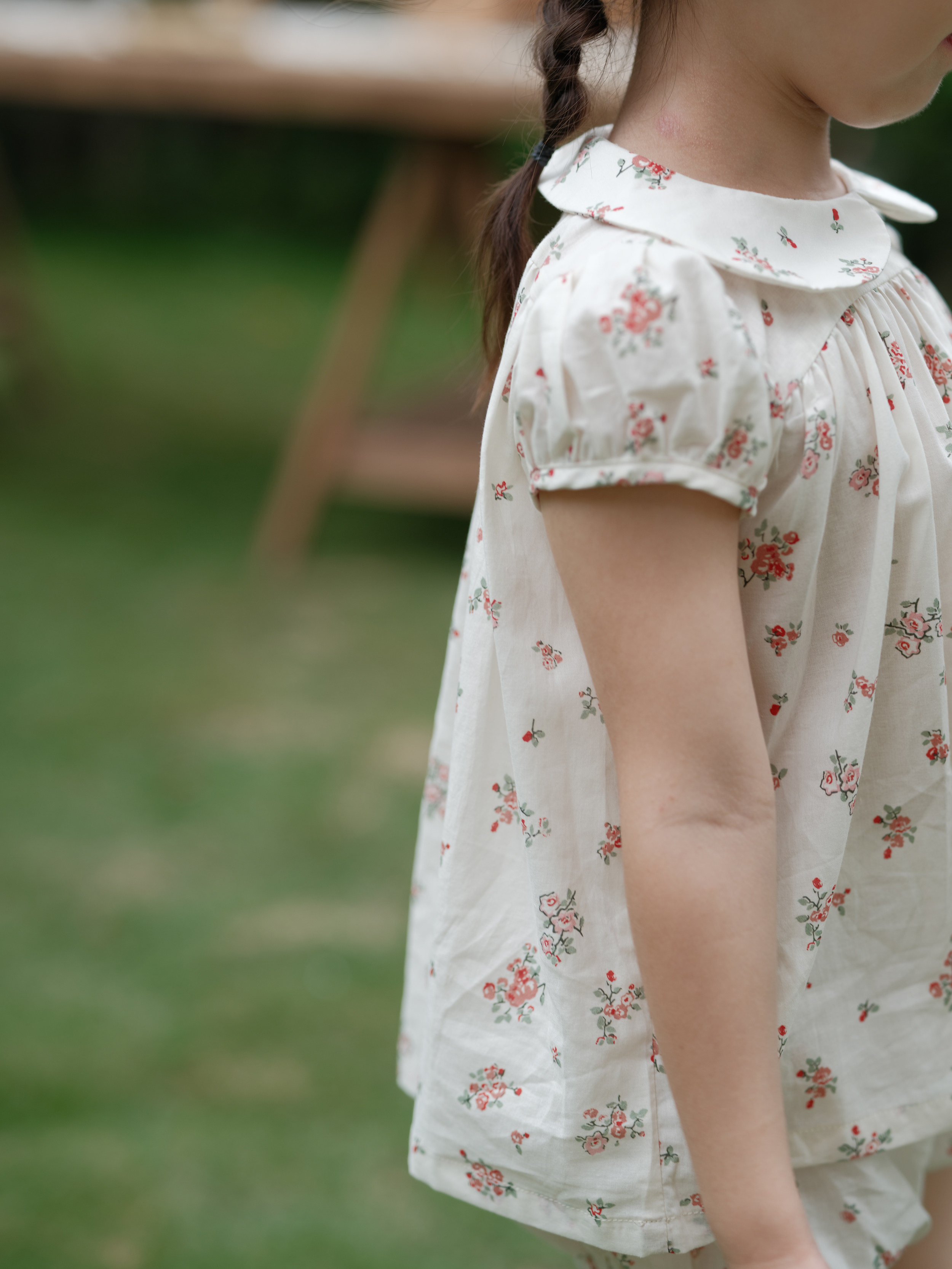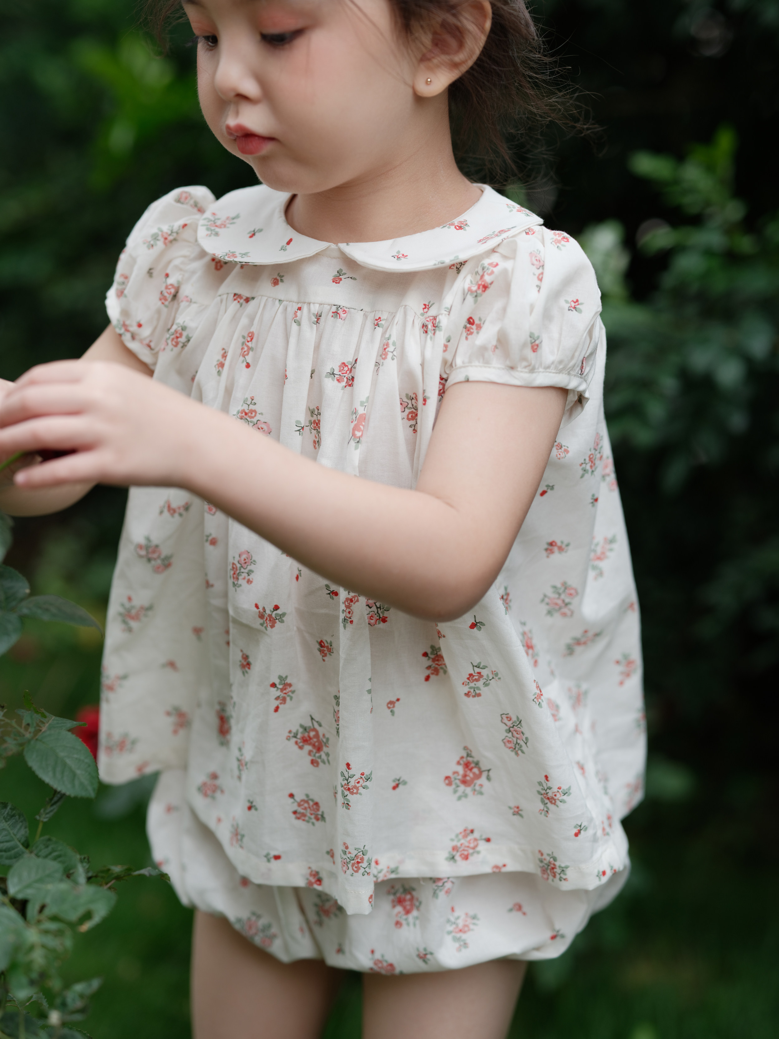 Beginner 2022 Summer girls Fresh Rose Broken Flowers Suit Pure Cotton Short Sleeve Doll Blouse Blouse Pants