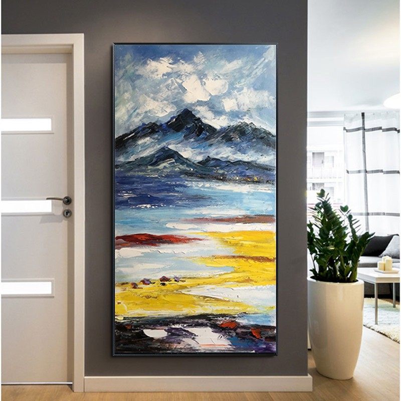 Original Alps Mountain Range Scenic oil painting Pure artisanal entrance to the family Xuanguan Decorative Painting Vertical veranda End hanging painting