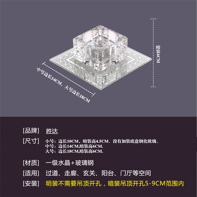 Spotlight led creative crystal lantern embedded square aisle lamp corridor shape hole lamp porch ceiling lamp