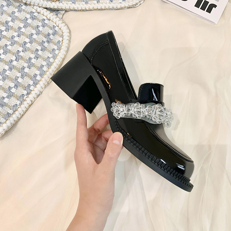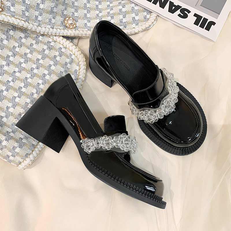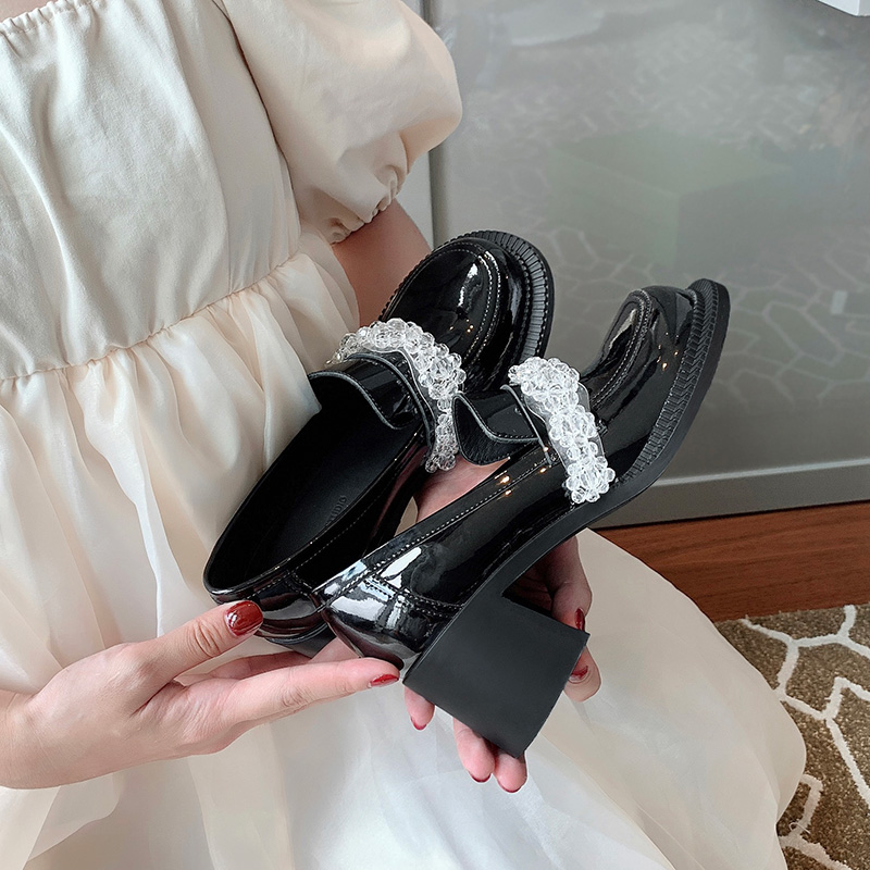 Mary Jane Head Little Leather Shoes Woman 2022 Spring new Inn Wind comeback ancient thick bottom One foot pedal crystal Lefoe shoes