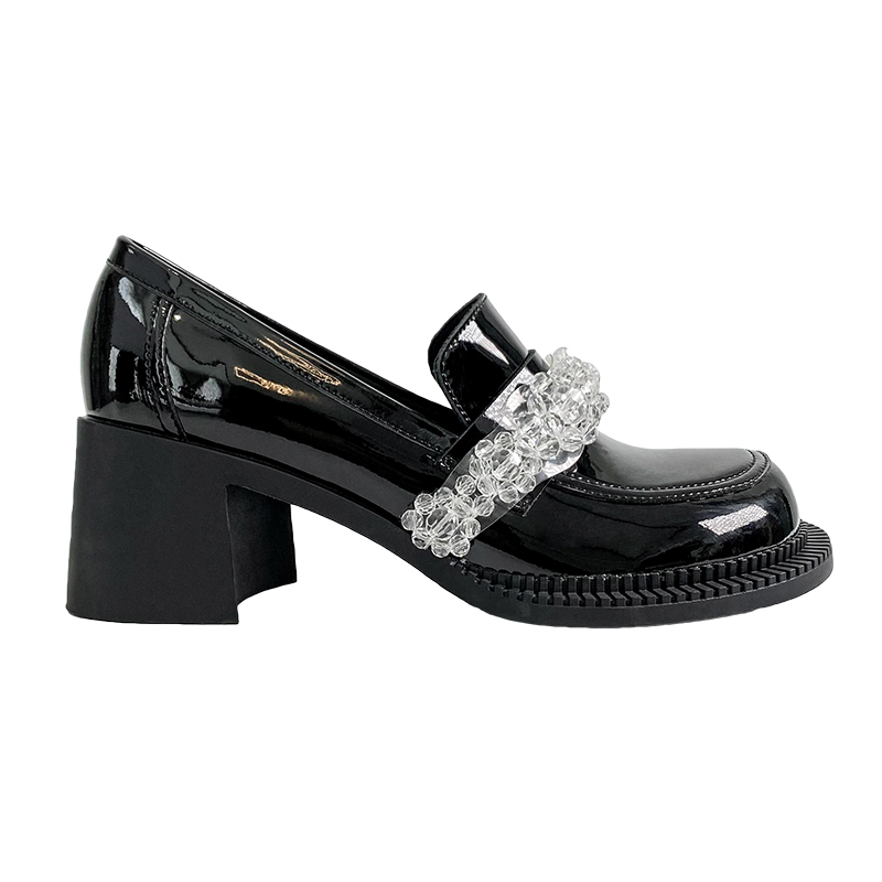 Black bright face lacquered leather (crystal section) black matt cow leather (crystal section)