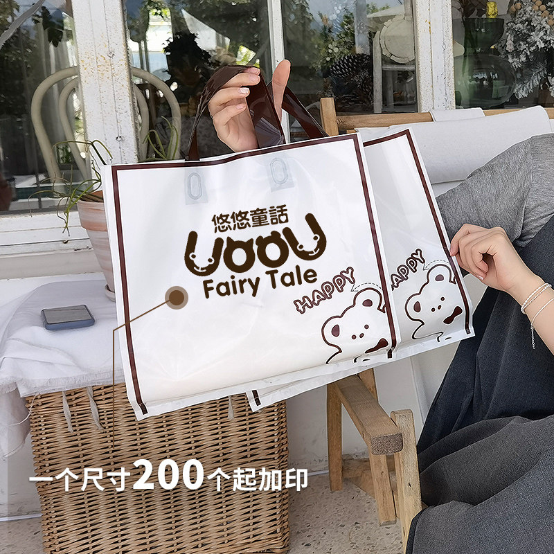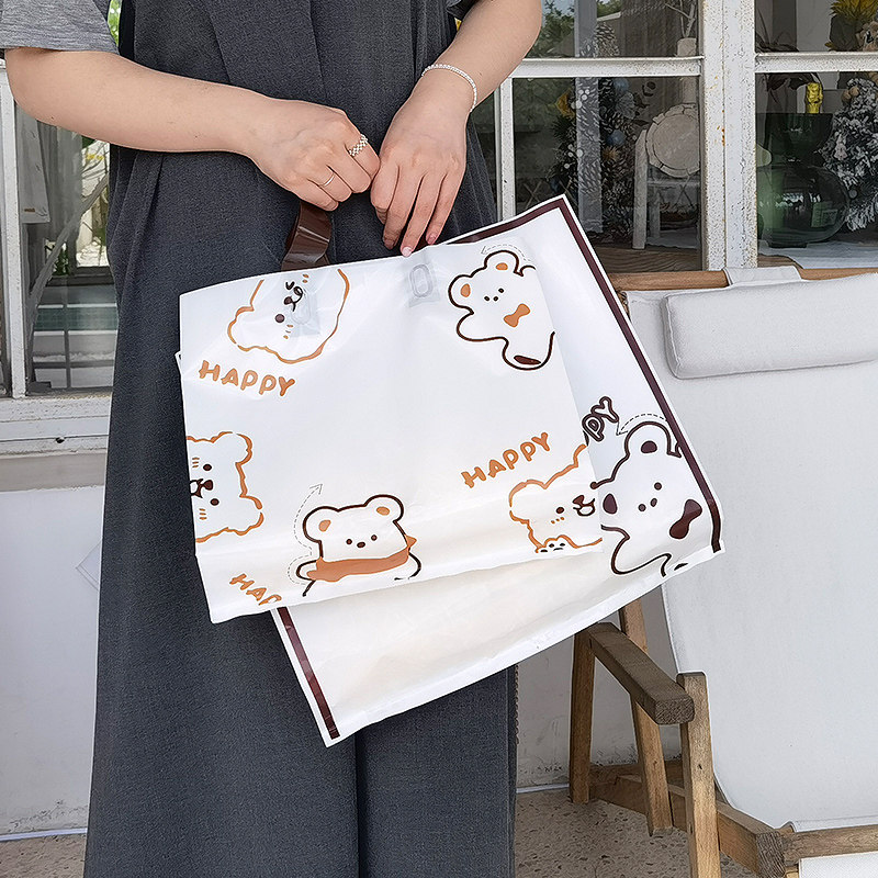 Happy Bear Clothing Store Bag Women's Clothing Children Clothing Gift Bags Shopping Carry-on Plastic Teenage Cartoon Custom Packing Bag