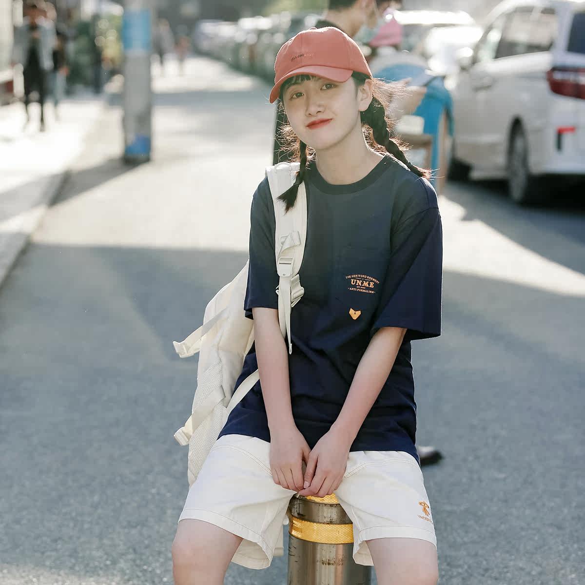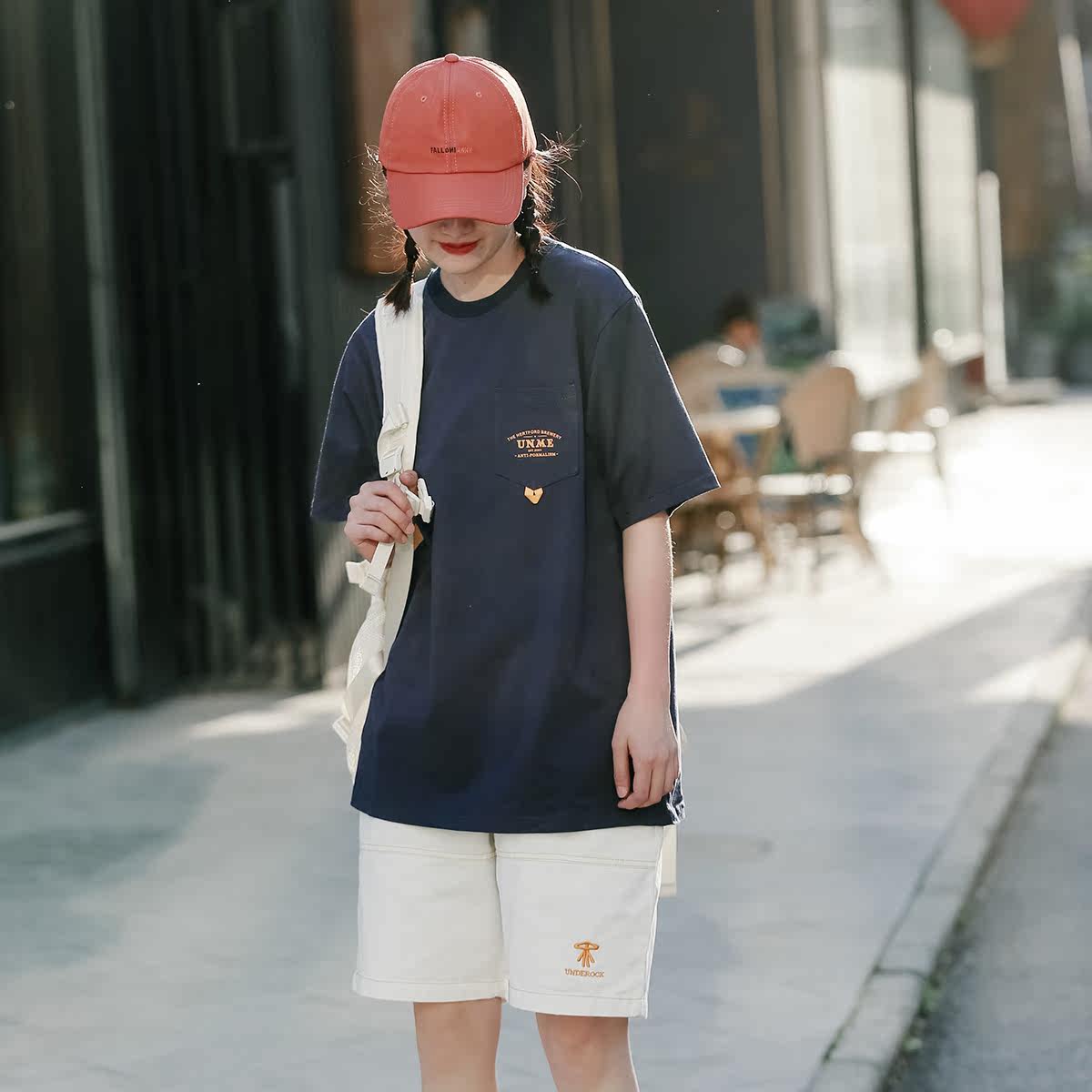 Upright walking in summer behind the letter printing short-sleeved T-shirt female tide brand couple wear half-sleeved ins top student cool