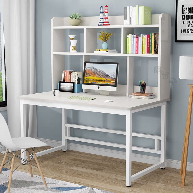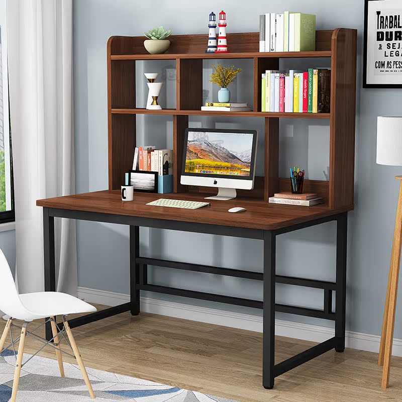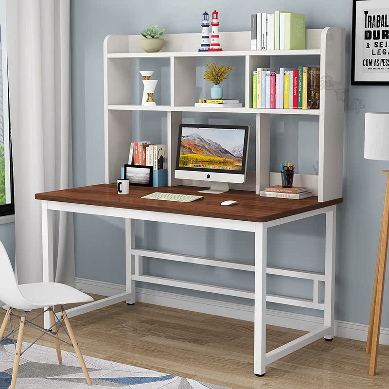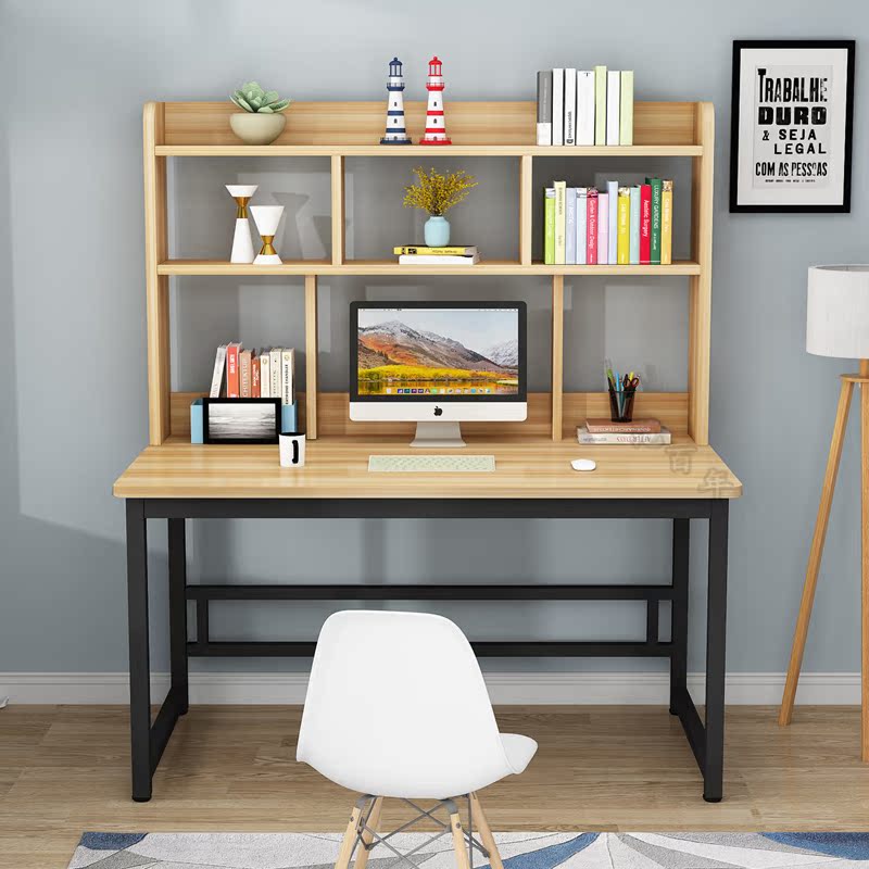 Student desk bookshelf combination table solid wood home desktop computer table steel wood table with bookshelf study table