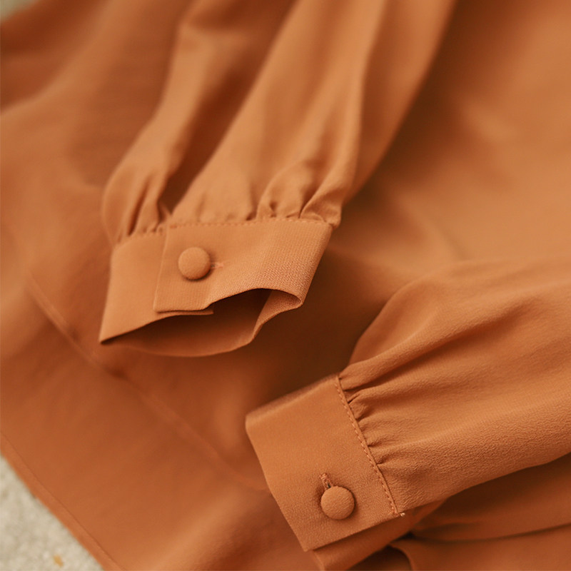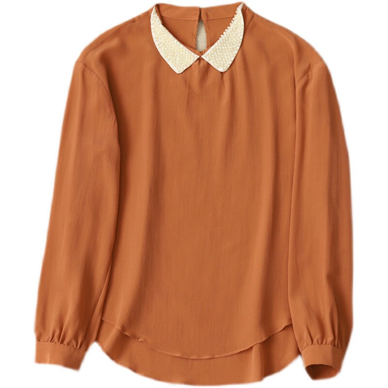 Temperament quite out of color Heavy work nails Beads Doll Collar 03 Double Crepe Genuine Silk Shirt Woman Long Sleeve Mulberry Silk Shirt