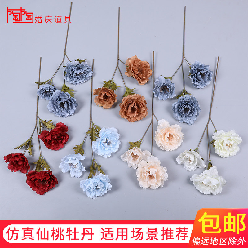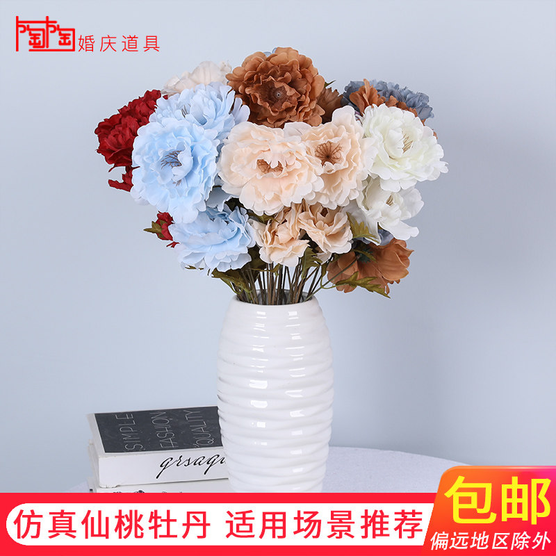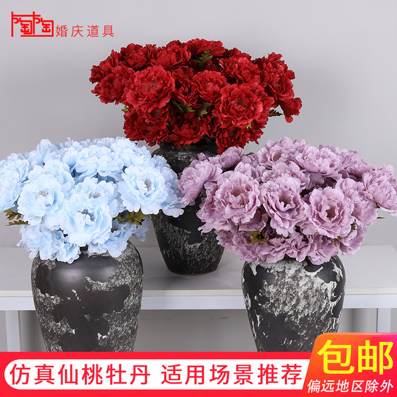 Fairy Peach Peony Emulation Wedding Decoration Flower Wedding Hall Hotel Arrangement With Flower Platoon Silk Flowers Fake Flower Peony Flowers