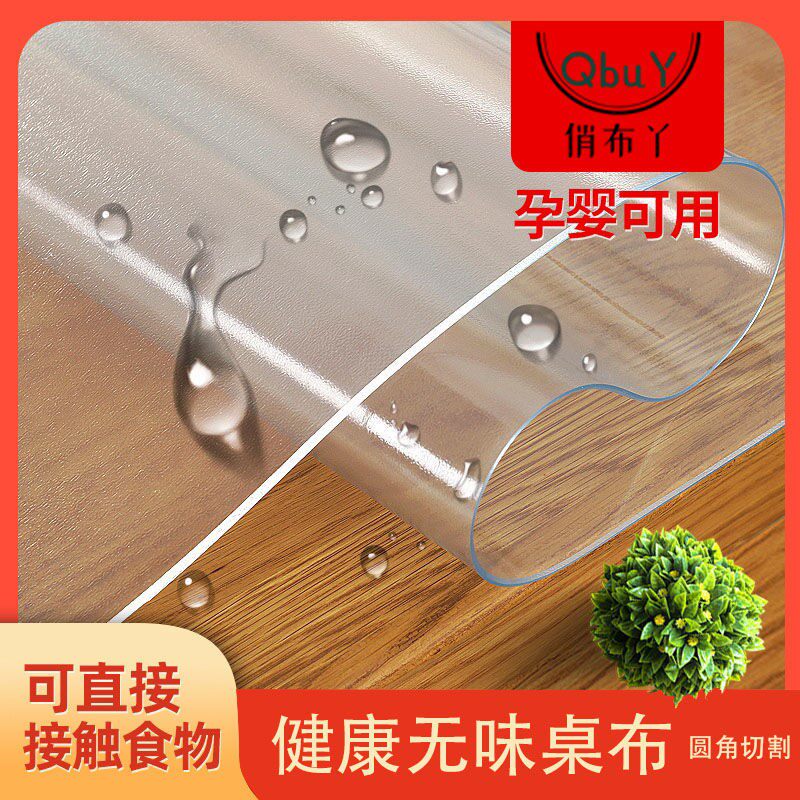 Odorless transparent table mat pvc tablecloth soft glass waterproof oil-proof crystal board desk student dining table coffee table free 1 wash