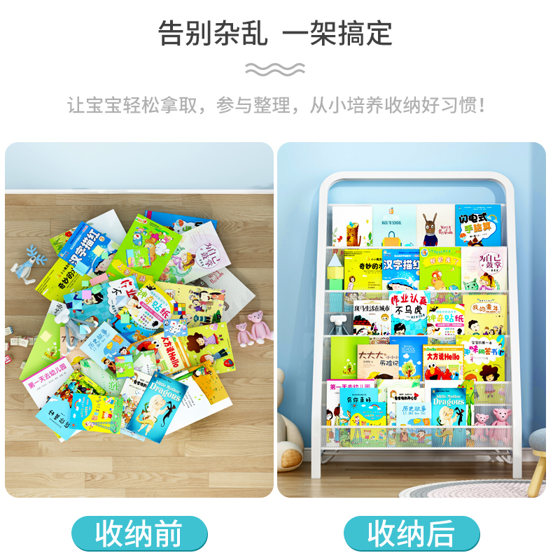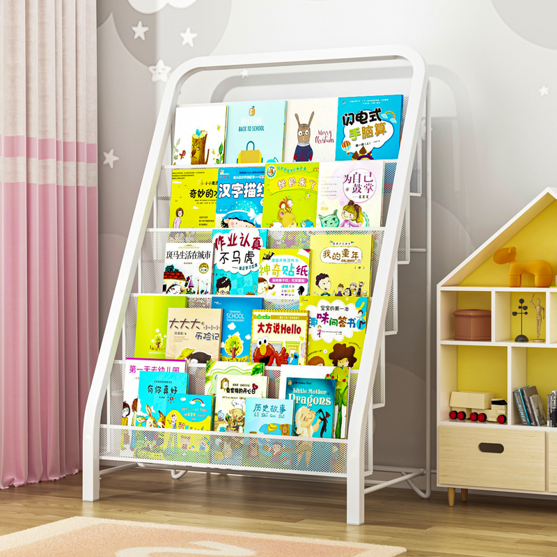 Children's bookshelf floor-to-ceiling picture book rack toy storage rack wrought iron simple living room small bookcase baby storage shelf