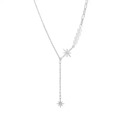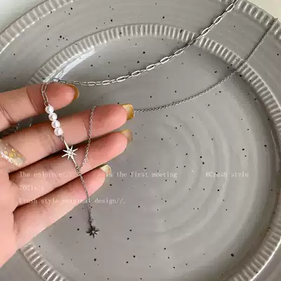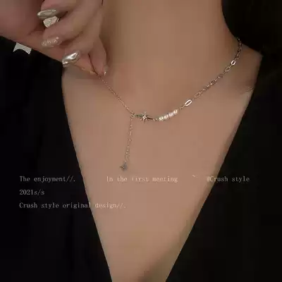 Pearl eight Awn star stitching necklace female light luxury niche design high sense temperament simple pendant choker accessories