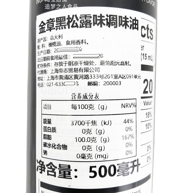 Italian Import Gold Seal Black Truffle Seasoned Oil 500ml Bottled Western Meal Seasoned Black Truffle Taste Olive Oil-Taobao