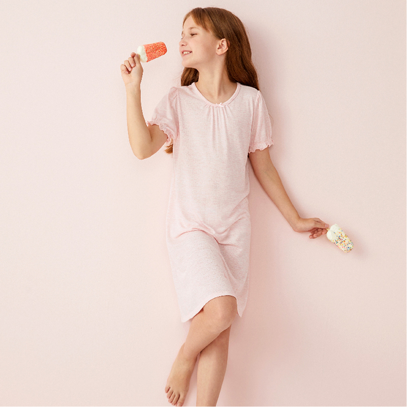 Maniform cute girls' short-sleeved round neck comfortable nightdress girls home clothes pajamas skirt children's living clothes