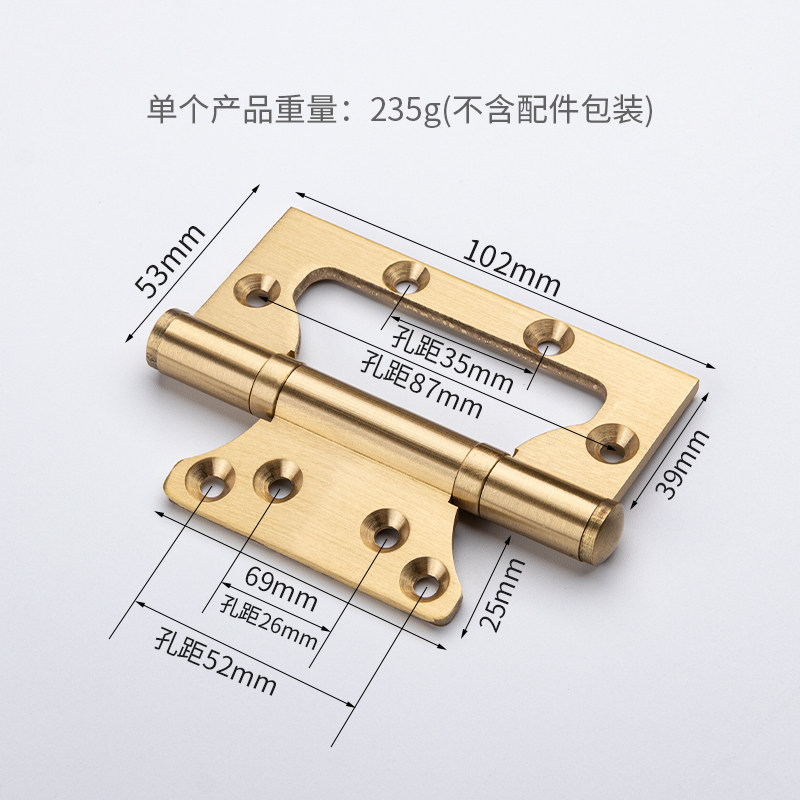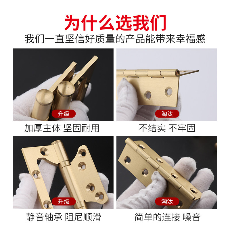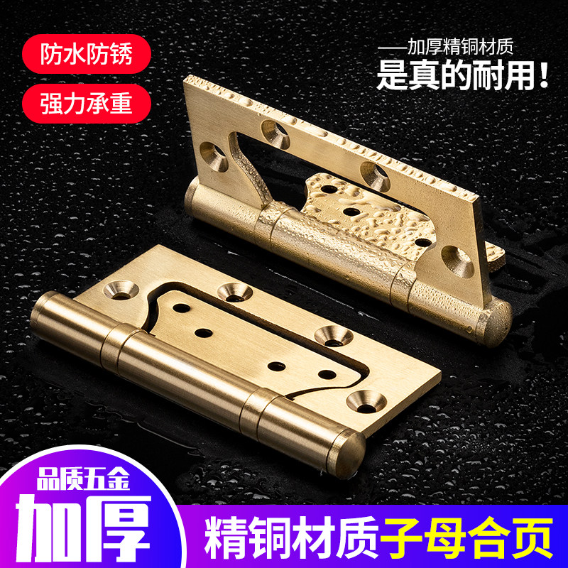 Diligent Sun 4 Inch Copper Hinge Hinge House Door Solid Wood Door Silent Copper-primary hinge Bedroom Notched Thickened type
