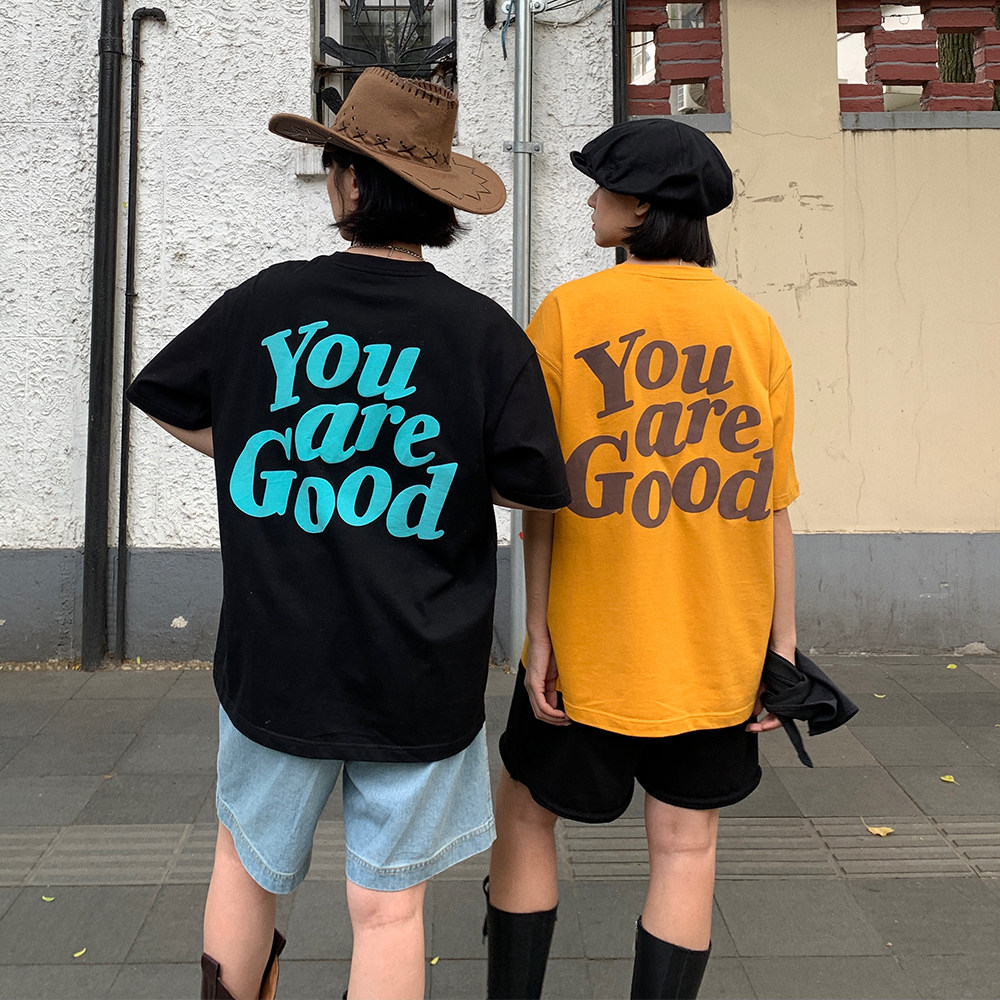 Nice store MeihaoStore 4 colors youaregood embroidery printed short sleeves easy version lovers