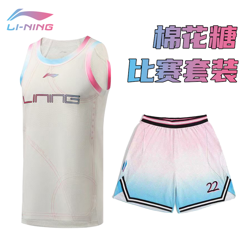 Li Ning Short Sleeve Miami Shirt South Coast Cotton Candy Basketball Suit Cardiovert Loose Blouse AHSR875