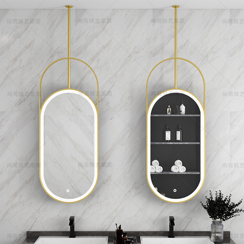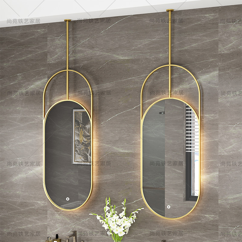 Nordic hanging mirror hanging oval mirror simple dressing table makeup mirror bathroom hanging mirror powder room mirror with lamp hanging mirror
