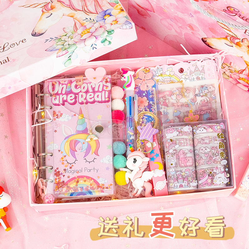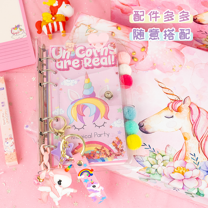 Handbook set girl cute loose-leaf ins wind girl heart diary deluxe gift box 2021 notepad a6 sticker coloring page blank primary school net red unicorn cane this girl