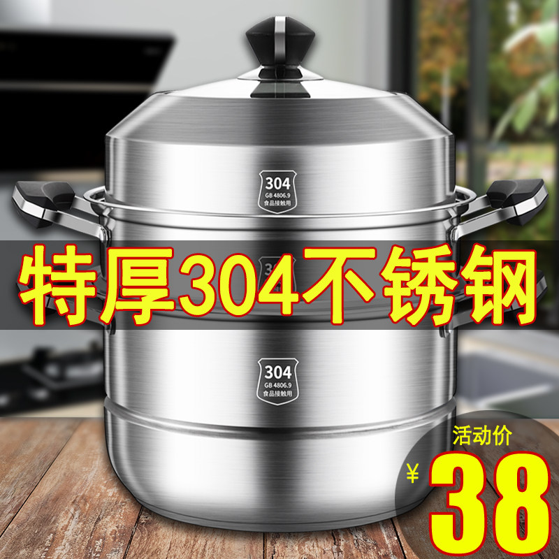 Steamer household 304 stainless steel thickened three-layer large steamed fish steamer drawer steamed bread double 2-layer induction cooker gas stove