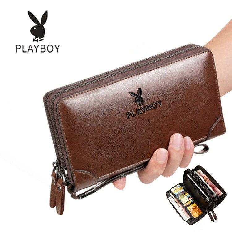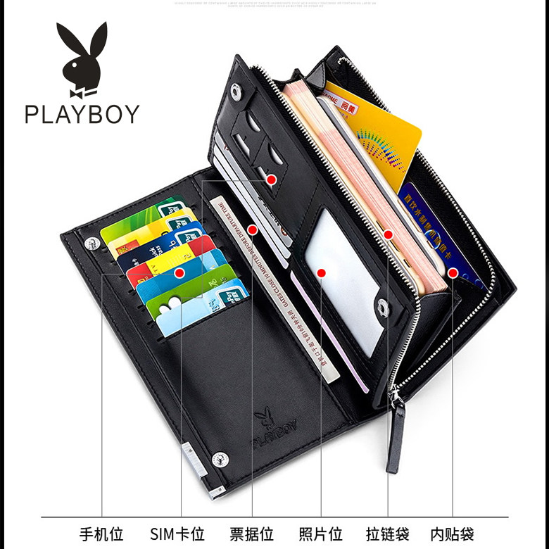 Playboy leather texture long version men's wallet large capacity 2022 new popular multi-card business handbag