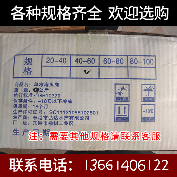 Scallop meat with internal organs commercial frozen large 10 catties small seafood with yellow sauce fresh extra large scallop meat