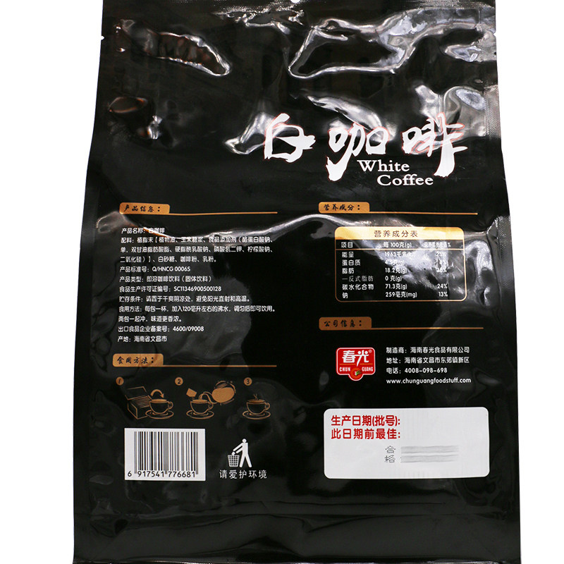 Chunguang food Hainan specialty brewed White coffee traditional craft roasted coffee incense 400g2 bags of instant coffee