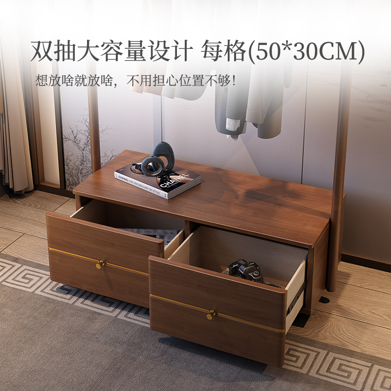 Nordic all solid wood hanger floor bedroom hanger living room with drawer coat rack hanging clothes rack removable