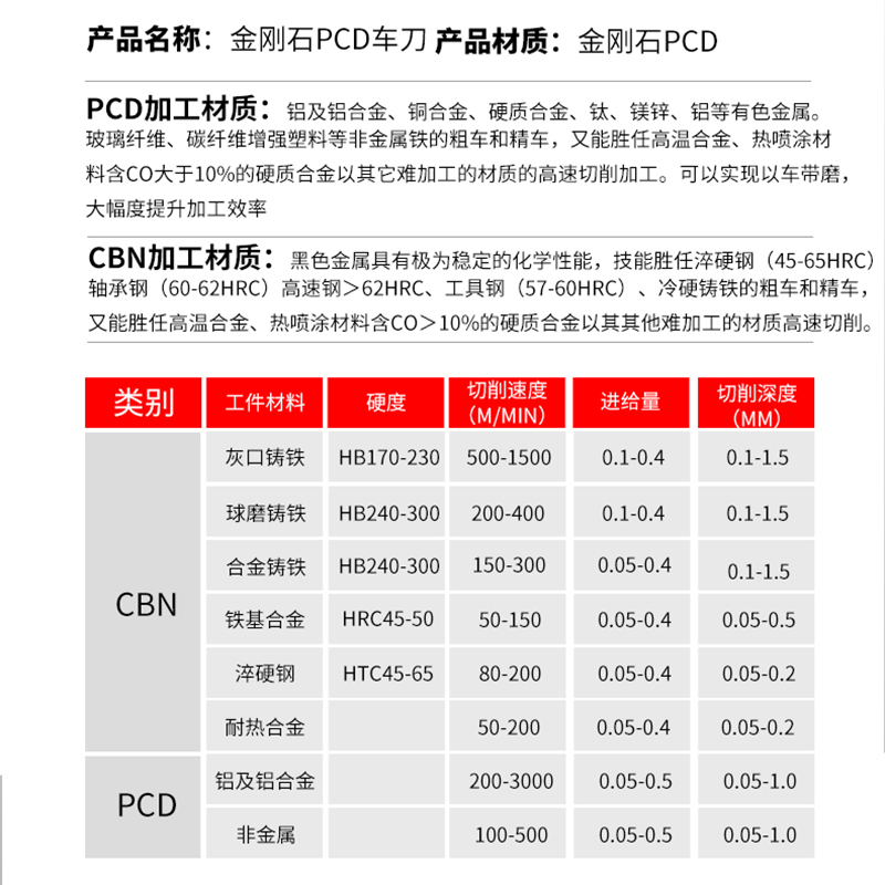 PCD CBN diamond inner boring cutter trail brass and aluminum quenching steel precious steel carbon fiber microR0 2 0 3