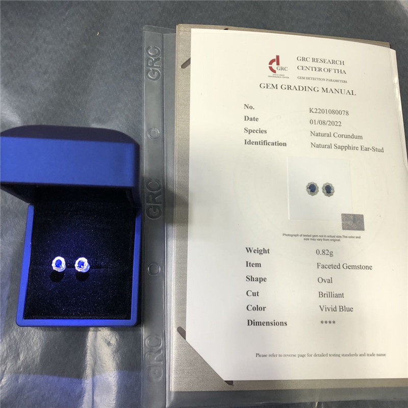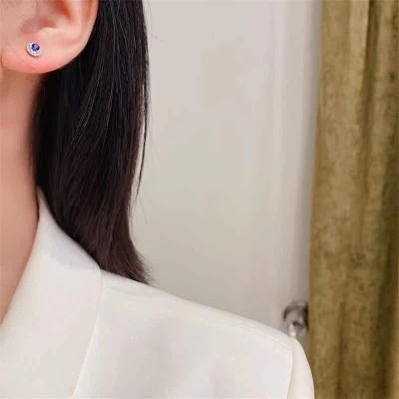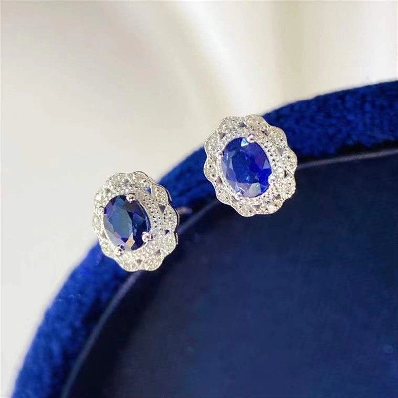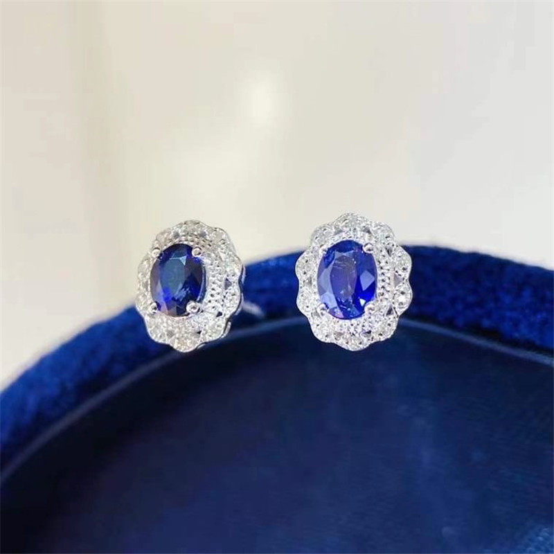 18K Platinum Sapphire 45 Diamonds 5 Earrings Earrings Earrings Petal Four Claws Inlaid Small Delicate And White Retro Blue