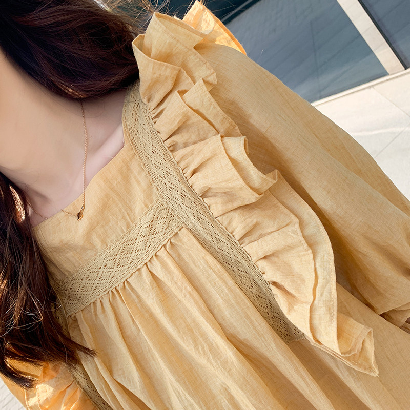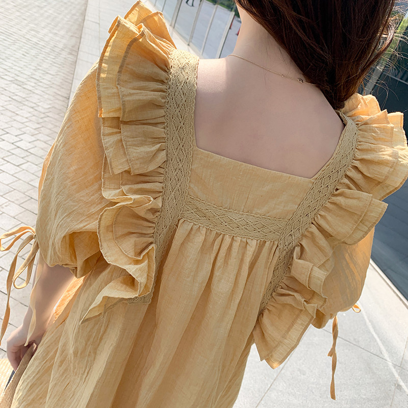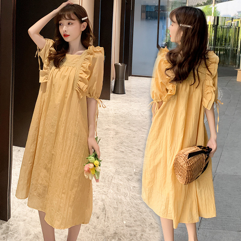 Pregnant women summer season large size loose chiffon thin new medium and long version sweet French short-sleeved high-end dress
