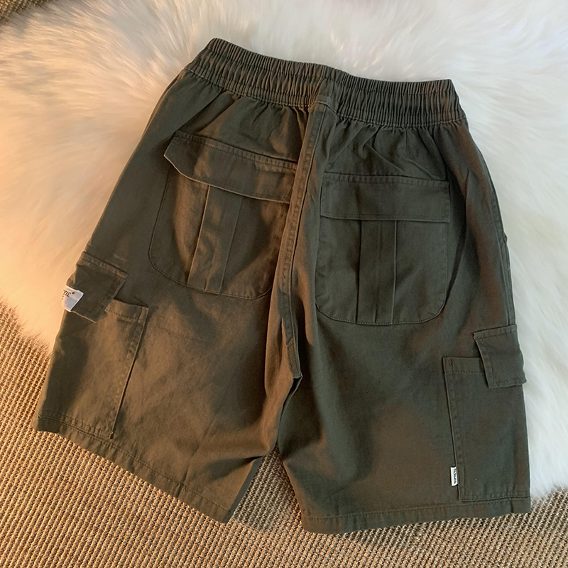 ins overalls shorts men and women Summer new day series Tide Cards Loose big pockets 100 Lap Casual Straight Barrel 50% Pants-Taobao