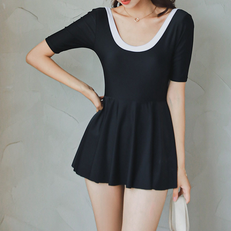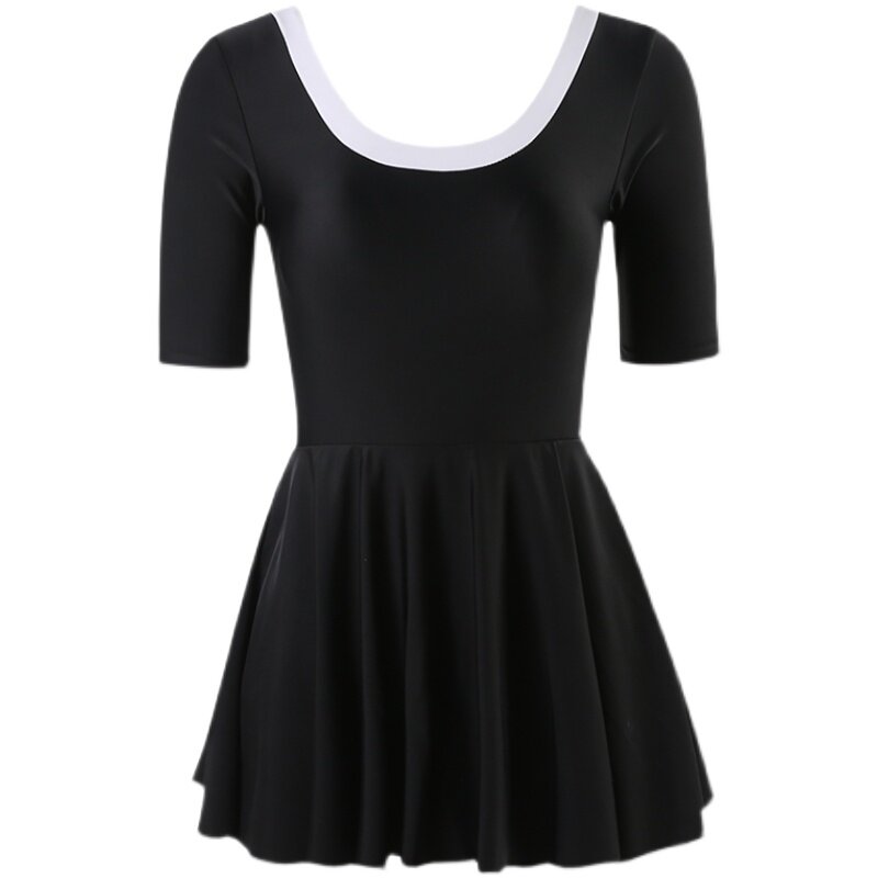 2021 new girl girl student black short-sleeved one-piece skirt conservative belly cover thin professional training swimsuit