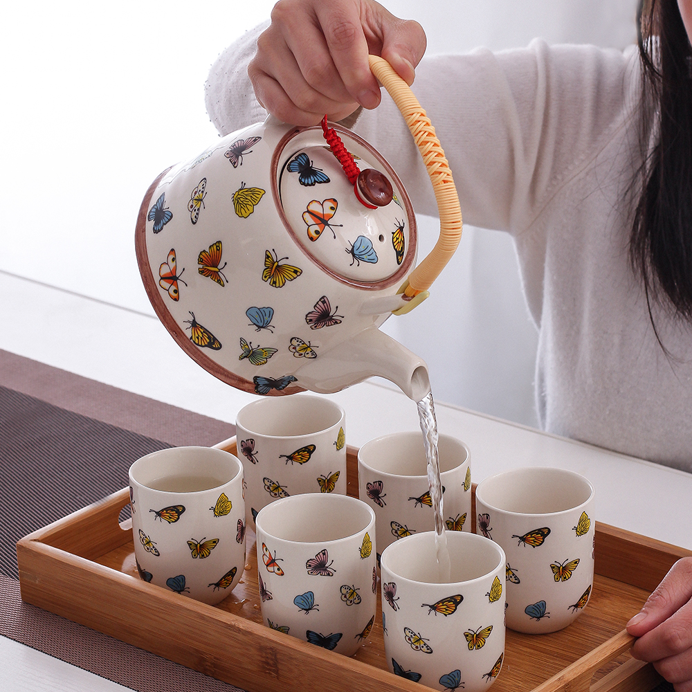 Dance gracefully 1 pot 6 cups slim 1 pot 6 cups of red cherry blossoms 1 pot 6 cups of blue cherry blossoms 1 pot 6 cups of blue and white peonies 1 pot 6 cups of plum, orchid, bamboo and chrysanthemum
